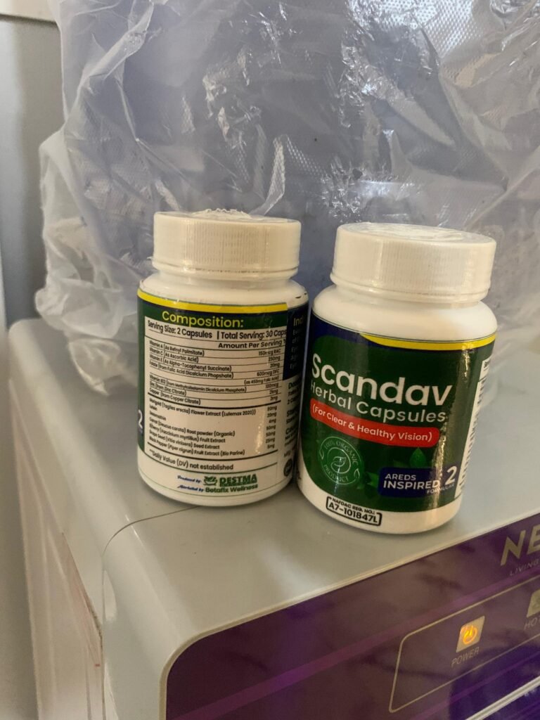 Small letters became problem for me. I had to stretch my hand to read anything, and my eyes would water after a few minutes. My daughter bought Scandav for me. I still use my glasses, but with the capsules my eyes feel stronger and I can read my Bible and phone for longer without that heavy, painful feeling.